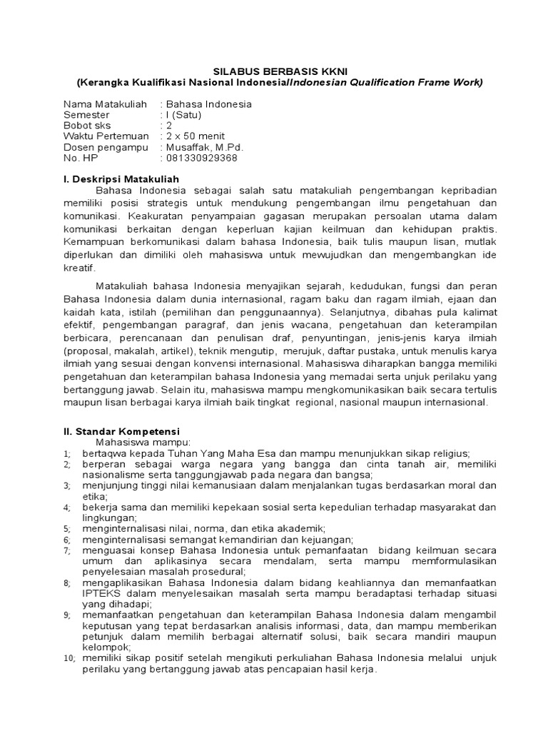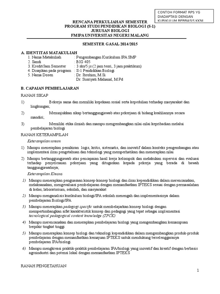 Contoh rps berbasis kkni. Rps dapat disusun dalam bentuk tabel seperti contoh pada 8. Penerapan kurikulum berbasis kkni ini bukanlah hanya secarik kertas yang bisa dengan mudah dihapus dan disusun ulang mengikuti format terbaru. Contoh format rps tuliskan cp mk yang sesuai dg cp prodi dan bersifat dapat diukur diamati materi pokok bahasan bahan kajian yg relevan dg cp mk dan sesuai dengan tahapan belajar mhs. Pembelajaran berbasis proyek pembelajaran berbasis masalah atau. K daftar referensi berisi buku atau bentuk lain nya yang dapat digunakan sebagai sumber belajar dalam pembelajaran mata kuliah. L format rencana pembelajaran semester tabel 8.