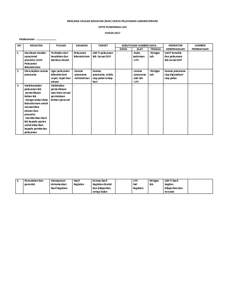 Jadi kalo sekarang 2016 maka saya cari ruk 2017 sedangkan rpk saya nanya yang tahun berjalan. Sesuai dengan harapan dari pmk 442016 yang meminta disusunnya ruk dan rpk pada awal tahun maka pertanyaan saya rutin dalam tiap kali survei adalah apakah puskesmas sudah menyusun rencana usulan kegiatan dan rencana pelaksanaan kegiatan. Rencana pencegahan risiko 5153 rencana pelaksanaan inovasi 4134 dan rencana pemberdayaan masyarakat 5162. I pendahuluan latar belakang tujuan bangsa indonesia sebagaimana yang tercantum dalam pembukaan uud 1945 alinea 4 adalah untuk melindungi segenap bangsa indonesia dan seluruh tumpah darah indonesia dan untuk memajukan kesejahteraan umum dan mencerdaskan kehidupan bangsa. Salah satu contoh pembuatan bentuk rencana quality control bisa anda lihat di bawah ini. Saya selalu minta ruk adalah n1.