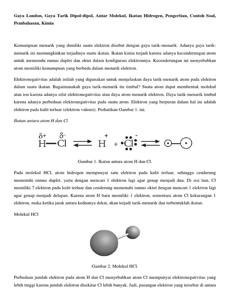 Gaya london terjadi di semua partikel. Teori mekanika kuantum gaya dispersi. Titik didih senyawa sebanding sekaligus mencerminkan kekuatan gaya london. Gaya london sering juga disebut dengan gaya tarik menarik dipol terimbas. Namun untuk senyawa ion pengaruhnya bisa dibilang sangat kecil jika dibandingkan dengan gaya tarik menarik yang terjadi antar ion. Interaksi dipol terimbas dipol terinduksi gaya antarmolekul ini terjadi saat molekul polar mengimbas menginduksi molekul nonpolar.