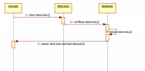 Pada diagram pendaftaran petugas dan daftar anggota sebagai objek petugas memasukan data siswa pada taftar anggota setelah itu disimpan data tersebut kedalam database daftar anggota kemudian sistem memberikan pesan kepada petugas bahwa pesan tersebut sudah berhasil disimpan. Pada diagram use case ini setiap kegiatan digambarkan kedalam sebuah use case berbentuk lonjong dan terdapat minimal seorang aktor. Definisi class diagram class adalah kumpulan objek objek dengan dan yang mempunyai struktur umum behavior umum relasi umum dan semantickata yang umum. Sistem yang sedang berjalan current system sistem peminjaman buku di perpustakaan saat ini masih dilakukan secara manual. Contoh sequence diagram perpustakaan.