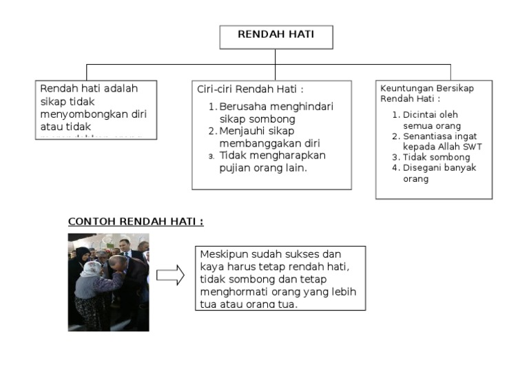 Contoh sikap rendah hati ini ciri cirinya ciri ciri rendah hati 9 ciri sikap rendah hati yang dimiliki seseorang kerendahan hati adalah cerminan dari sikap dewasa orang yang memiliki sikap rendah hati tidaklah merasa sombong dan angkuh dengan kelebihan yang dimilikinya justru ia cukup cerdas untuk menutupi kelebihannya dan mengakui kekurangannya. Meski sama sama memakai kata awal rendah namun pengertian keduanya sangatlah berbeda. Tidak akan masuk surga siapa yang dalam hatinya terdapat kesombongan walaupun hanya sebesar zarrah dari hadits tersebut dapat kita ketahui bahwa orang yang rendah hati akan masuk surga dan barang siapa yang menyombongkan. Ia tidak mengharapkan lebih daripada yang dapat dilakukan murid muridnya. Rendah hati menunjukan bahwa kita puas dengan diri kita percaya dengan diri kita namun tidak menunjukan semua yang kita miliki. 5 alasan penting mengapa sikap rendah hati perlu dimiliki setiap pemimpin pemimpin paling efektif adalah mereka yang memiliki sikap rendah hati dan tidak sombong dengan setiap pencapaian dan prestasi yang mereka dapatkan.