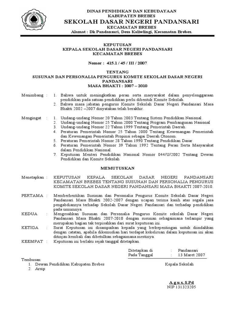 Keputusan kepala sekolah nomor. Komite sekolah sumbangan bantuan dan pungutan. Kepala sekolah dasar swasta islamiyah sibolga. Contoh sk penetapan pengurus komite sekolah untuk sd smp sma atau sederajat. Kepala sekolah dasar swasta islamiyah sibolga. Ada 2 dua contoh sk komite sekolah yang akan kami sajikan.