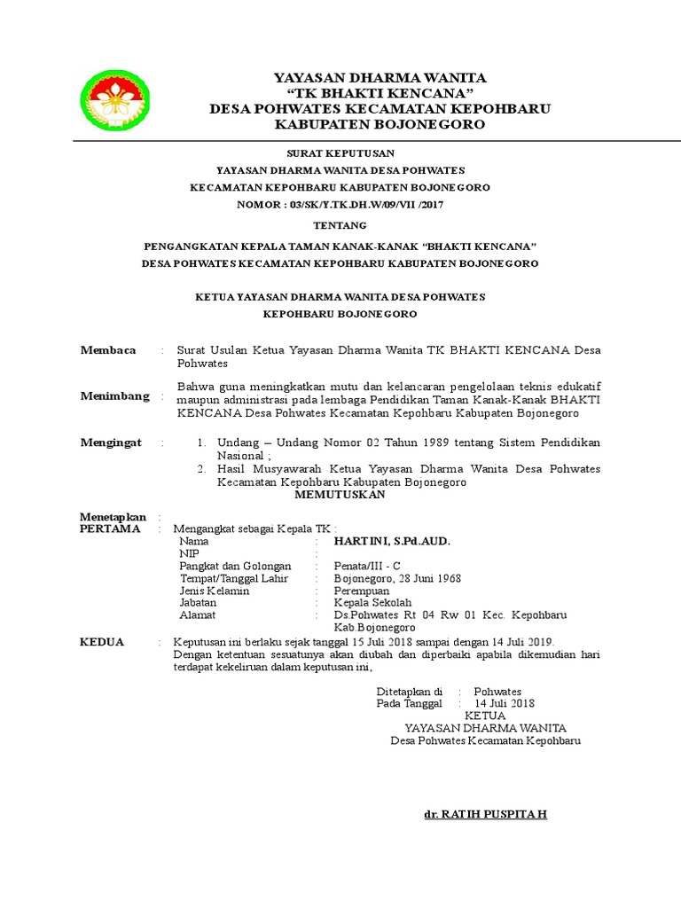 Surat keputusan ketua yayasan miftahul huda. 034ydskviii2013 tanggal 20 agustus 2013 tentang pengangkatan rektor institut teknologi del. Contoh surat keputusan pengangkatan kepala sekolah merupakan surat keputusan yang dikeluarkan oleh ketua yayasan tentang pengangkatan kepala sekolah yang barujika anda ingin melihat bagaimana contohnya berikut ini kami sertakan di bawah ini. Mengangkat mereka yang namanya disebut dalam lampiran sebagai ketua program studi. 06 juli 2009 nomor. Download rpp silabus prota prosem kkm skkd ktsp 2006 sd kelas 5.