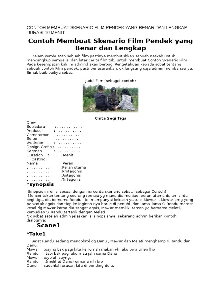 Contoh naskah skenario drama film pendek. Contoh membuat skenario film pendek yang benar dan lengkap durasi 10 menit. 23 responses to contoh membuat skenario film pendek yang benar dan lengkap durasi 10 menit pengenalkublogger 18 january 2019 at 0311. Ini memang cuma skenario dampaknya buat mental kalian. Film pendek ialah film yang memiliki durasi tayang tidak lebih dari 60 menit dan skenario film pendek biasanya kurang lebih sepanjang 10 halaman. Mau lihat contoh skenario besar yang dampaknya kepada seluruh rakyat.