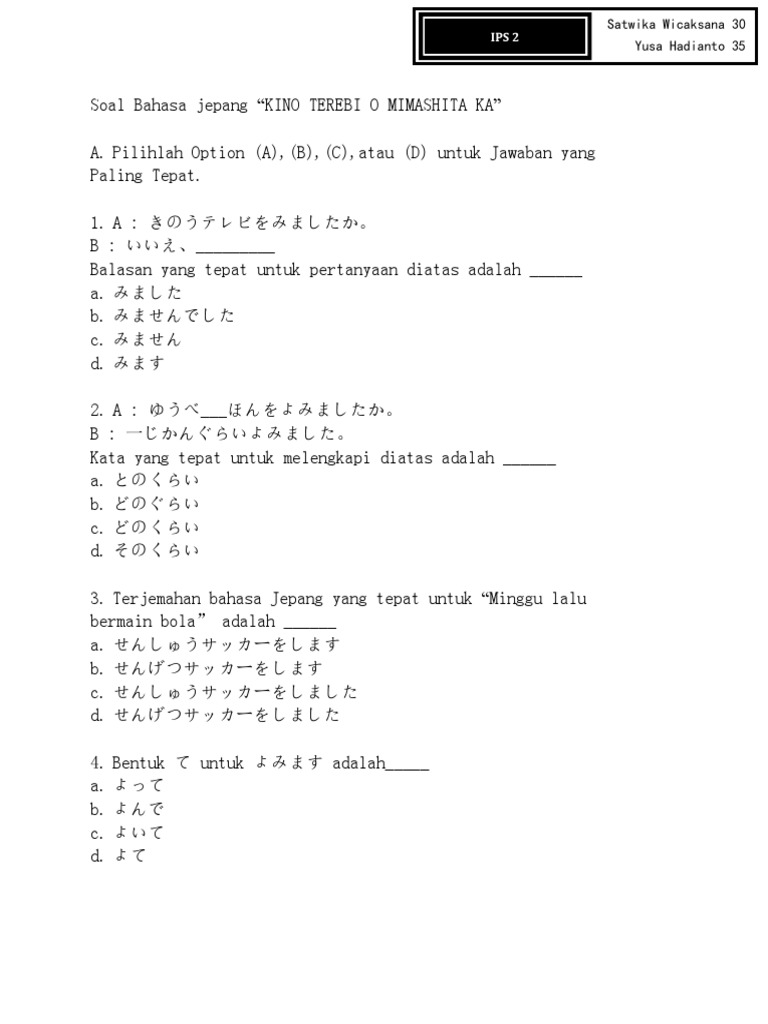 Contoh Soal Bahasa Jepang Kelas 12 Guru Ilmu Sosial