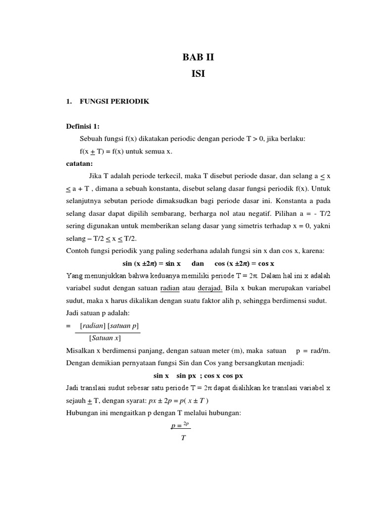 Jika diketahui n 4. Di bawah ini adalah grafik pendekatan deret fourier hingga n13 beserta gelombang kotak originalnya dengan a 10. Dalam matematika fungsi priodik dipelajari jika anda membahas tentang sinus dan cosinusagar menambah pemahaman dalam artikel ini kita akan bahas mengenai fungsi priodik sinus dan cosinus. Deret fourier untuk sinyal diskrit periodik 2 1 f 2 1 n k f n 2 k s e x n c e c s k k k k j n k n 1 k 0 k k n 1 k 0 j2 kn n k k d d s d z d s s z z s x n n x n n periodadasar k n k n 1 n 0 x ne j2 kn n c n 1 ck s. Koefisien deret fourier untuk isyarat kotak diskret dengan 2n115 dan a n10 b n20 dan c n40. Feri febriansyha 2007121458 kelas.