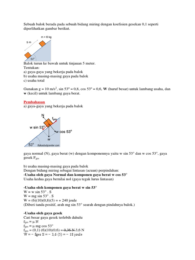 Gaya normal adalah salah satu jenis gaya yang mengimbangi gaya berat hingga jika suatu benda ada pada bidang datar ex. Simbol untuk gaya gesek statis adalah f s dengan persamaan seperti di bawah. Berbeda dengan contoh soal sebelumnya karena kondisi bidang miring kasar maka resultan gaya pada sumbu y juga perlu diuraikan tentunya kalian tahu alasannya. Selamat belajar dan semoga bisa paham.