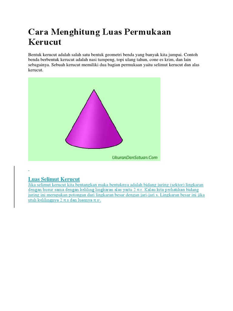 Luas permukaan kerucut πr s r 314. Rumus kerucut pengertian unsur jenis dan rumus cara menghitung luas alas permukaan kerucut dan volume kerut serta contoh soal kerucut dan pembahasannya. Hiutng berapa volume dan luas permukaannya. Cara menghitung luas permukaan kerucut berikut ialah beberapa contoh cara menghitung luas selimut kerucut dan juga luas permukaan kerucut. Berikut adalah beberapa contoh menghitung luas selimut kerucut dan luas permukaan kerucut. Luas permukaan kerucut penyelesaian.
