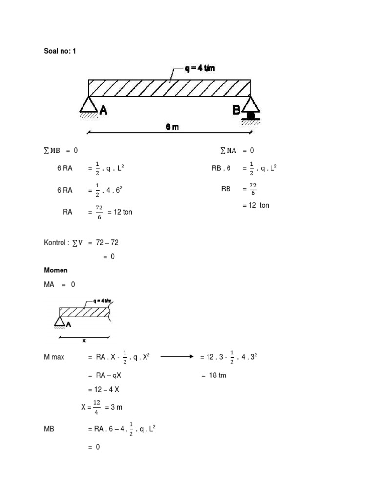 Konstruksi statis tertentu dan cara penyelesaiannya. Banyaknya contoh soal dimaksudkan agar para pembaca baik mahasiswa konsultan maupun dosen dapat dengan mudah mempelajarinya. Penutup untuk mengukur prestasi mahasiswa bisa melihat hasil atau kunci kunci yang ada secara bertahap. Sebuah batangan baja mendapatkan gaya seperti terlihat pada gambar di bawah ini. 3 hanya berupa grafis skor penilaian ada di tabel bawah untuk mengontrol berapa skor yang didapat. Cukup dengan menghitung salah satu reaksi tumpuan tersebut otomatis kita sudah mendapat harga reaksi tumpuan lainnya jumlah beban rarb 1 ra 6l x pa 68 x 4 3 ton maka rb 1 ton.