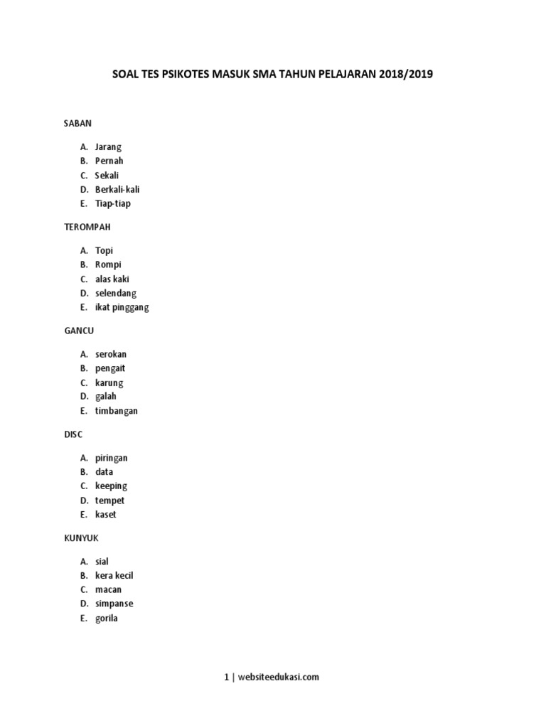 Dan untuk bisa masuk ke sekolah tersebut adik adik harus bersaing lewat tes akademik. Tes psikotes masuk smasmk smp sd tahun 2018 terbagi dua ada yang diawal pendaftaran dan ada pula pada saat menentukan kelas unggulan. Oleh karena itu bagi kamu yang tertarik untuk dapat di sekolah unggulan jangan. Tes inteligensi dan ketelitian 1. Olahraga yang dimainkan fulan tidak menggunakan bola. Tes psikotes sma adalah tes yang biasanya rutin dilakukan oleh sma sma favorit pada saat penerimaan peserta didik baru.