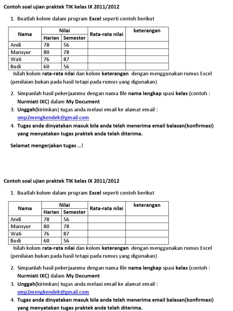 Berikut ini adalah download rpp dan silabus ktsp terbaru kelas 1 6 sd yang merupakan kumpulan file dari berbagi sumber downloadinfo guruperangkat pembelajaranrpp tentang soal tik kelas 9 essay yang bisa bapakibu gunakan dan diunduh secara gratis dengan menekan tombol download biru dibawah ini. Pada kesempatan yang baik ini kakak ingin berbagi beberapa soal latihan uas untuk mata pelajaran tik yang dikhususkan kelas 9 smpmts. Contoh soal tik kelas 9 perkembangan teknologi siswa dan siswi akan membutuhkan berbagai media elektronik karena zaman sekarang ini setiap siswa dan siswi sangat membutuhan komputer. Latihan soal untuk persiapan ujian tengah semester. Pembahasan soal uas tik kelas vii smp ta 20162017. Kisi kisi tik smpmts kelas 789 kisi kisi atau blue print merupakan rancangan tujuan tujuan khusus dan perilaku perilaku khusus yang akan menjadi dasar penyusunan soal soal tes.