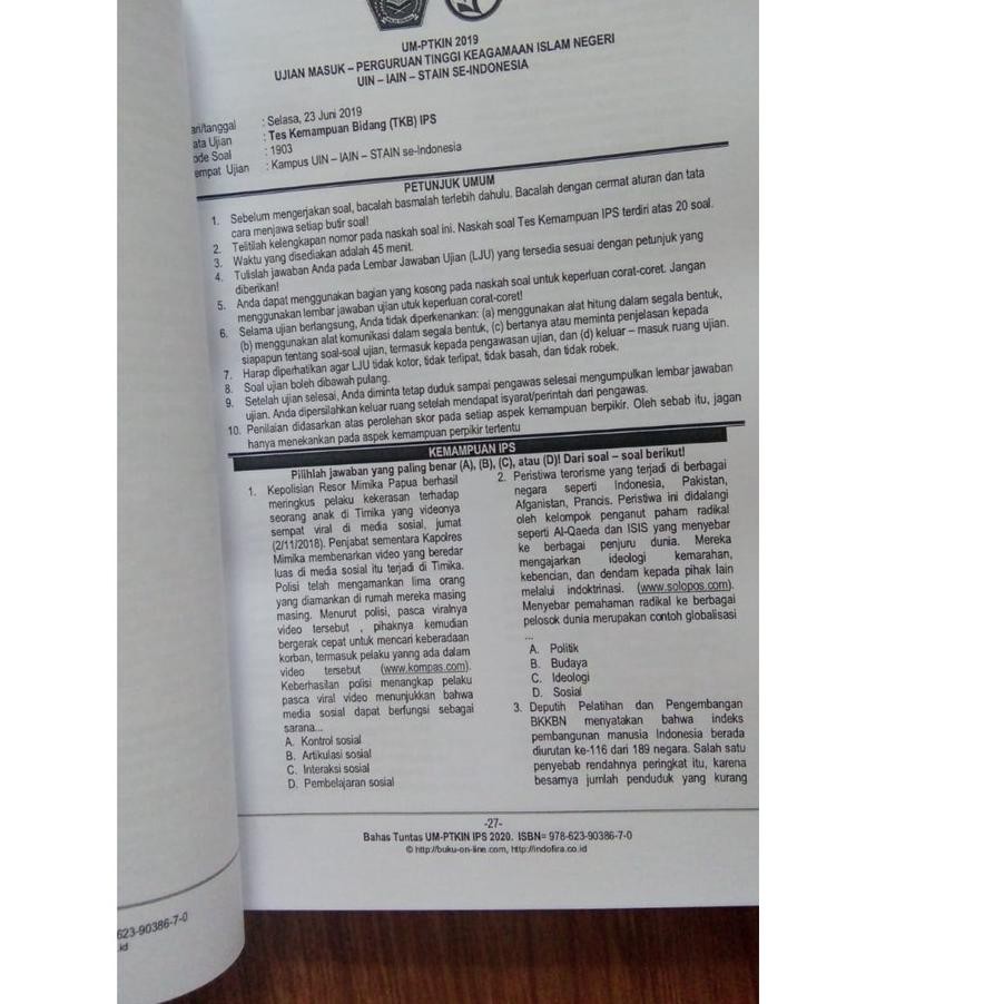 Materi contoh soal dan tips lulus um ptkin 2020 dalam kesempatan ini mamikos hendak memberitahu kamu semua mengenai materi contoh soal dan tips lulus um ptkin 2020 yang pasti dibutuhkan oleh sebagian besar kamu semua pembaca setia blog mamikos. Um ptkin ujian masuk perguruan tinggi keagamaan islam negeri merupakan proses seleksi masuk uin iain stain dan ptn yang memiliki izin program studi dibawah kordinasi direktorat pendidikan tinggi keagamaan islam kementerian agama republik indonesia di seluruh indonesia melalui ujian tertulis yang dilaksanakan secara bersama berbasis sistem seleksi elektronik sse. Bagi adik adik yang akan mengikuti um ptkin 2019 selain harus mempelajari latihan soal umptkin 2019 dengan mempelajari naskah asli soal umptkin tahun 2018 dan soal umptkin tahun 2017 atau soal soal sebelumnya serta materi lainnyaperlu diketahui bahwa kelompok ujian umptkin terbagi menjadi 3 tiga yaitu. Contoh soal um ptkin 2020 dan jadwal pelaksanaan ujian seleksi masuk perguruan tinggi tahun 2020 sudah mulai dibuka. Apalagi download soal um ptkin 2019 pdf dan kunci jawaban biasanya tidak ada.