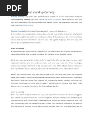 Makna harfiahnya komedi berdiri yaitu salah satu genre profesi melawak yang pelawaknya kadang disebut komika bahasa inggris. Saya sering diejek hifdzi karena jarang mandi suci 4 duration. Stand up comedy merupakan istilah bahasa inggris yang dalam bahasa indonesia artinya lawakan tunggal atau komedi tunggal. Cak lontong stand up comedy di depan menteri susi pujiastuti full video duration. Stand up comedy dodit mulyanto. Materi stand up comedy teman dlawakan lucu indonesia kali ini saya akan berbagi contoh materi mengenai stand up comedy tetapi sebelum memulai materi stand up comedy lebih baiknya kita tahu dulu apa sih yang dinamakan stand up comedi itu mari kita simak ulasan berikut ini.