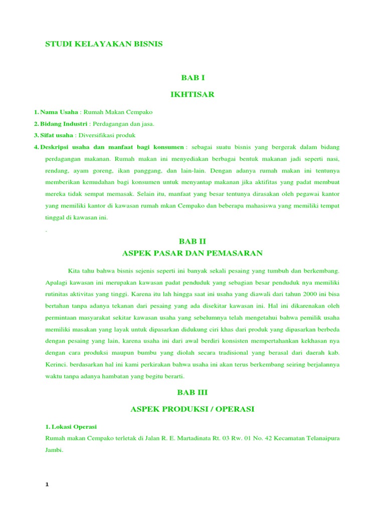 Download contoh proposal studi kelayakan bisnis skb proposalstudi kelayakan bisnisusaha digital printing bajupapua youth creativity disusun oleh nama. Oleh dosen pendidikan 2 diposting pada 24032020 24032020. Proposal studi kelayakan bisnis usaha cafe. Proposal studi kelayakan bisnis usaha cafe jurusan proposal studi kelayakan bisnis usaha cafe contoh cara. Konsep usaha kami untuk merangkul semua kalangan mulai dari orang tua pekerja. Bidang bisnis yang di terapkan oleh athem cafe berbentuk manufaktur dan jasa dari sisi manufaktur athem cafe mengolah bahan mentah menjadi produk siap konsumsi yaitu berupa makanan dan minuman dan dari sisi layanan athem cafe juga mengutamakan kenyamanan yang baik kepada konsumen sehingga dapat di simpulkan bidang usaha yang diterapkan memiliki dua arah yaitu manufaktur dan jasa.