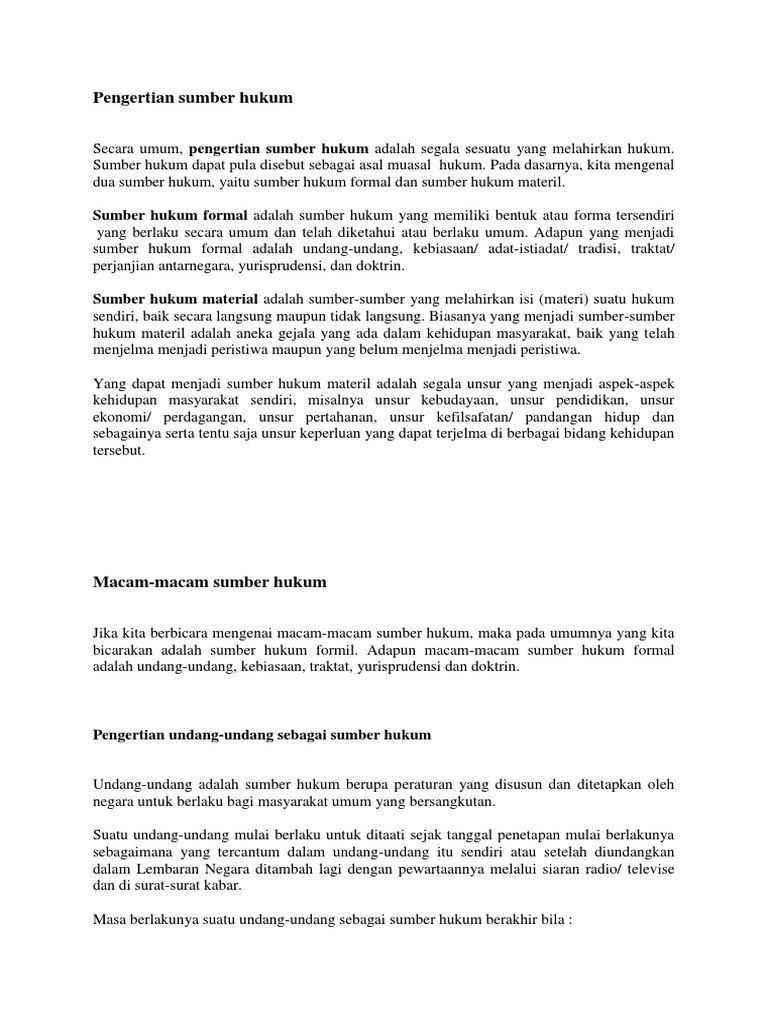 Demikian artikel pembahasan tentangpengertian sumber hukum macam macam dan contoh sumber hukum menurut para ahli terlengkap semoga bermanfaat. Dari definisi undang undang tersebut terdapat 2 dua macam pengertian. Sumber hukum materiil biasanya berupa gejala yang terjadi dalam masyarakat. Sumber hukum yang pertama adalah sumber hukum meterilmaterial yang melahirkan isi materi suatu hukum itu sendiri baik secara langsung maupun tidak langsung.
