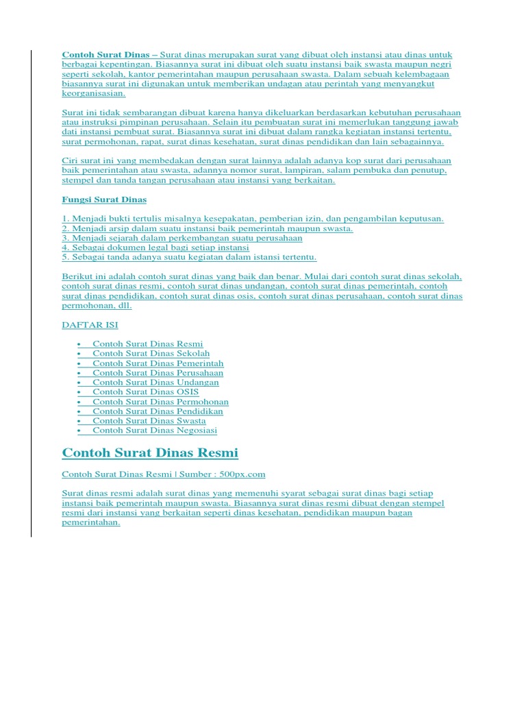 Contoh surat dinas selanjutnya adalah surat dinas yang dikeluarkan oleh pihak perusahaan swasta yang isinya berupa pemberitahuan cuti bersama dalam rangka memperingati hari raya idul fitri. Contoh surat dinas pengertian dari surat dinas adalah surat resmi yang dibuat oleh instansi atau lembaga untuk keperluan dinas baik pemerintah maupun lembaga swasta. Alhasil surat sebagai media komunikasi jadul inipun sudah semakin jarang digunakan. Contoh surat dinas swasta. Surat dinas adalah surat yang dibuat oleh instansi resmi atau dinas yang berguna untuk berbagai kepentingan tertentu. Surat dinas juga dipergunakan di lembaga dan organisasi di dalam instansi pendidikan pusat pelayanan umum dan semacamnya yang mana semuanya bertujuan untuk memberikan informasi.
