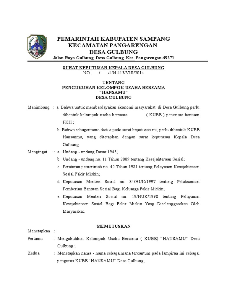 Rumah Kuno Contoh Surat Keputusan Kelompok Dari Kelurahan