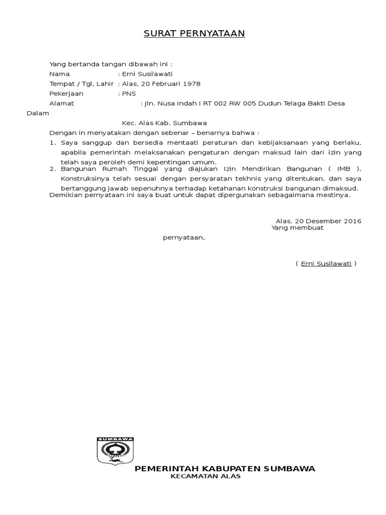 Pemerintah kabupaten aceh utara. Permohonan imbimmb yang diketahui oleh ketua rt dan lurah asli dan fotocopy 1 satu rangkap surat pernyataan tidak keberatan sebelah menyebelah asli dan fotocopy 1 satu lembar fotocopy ktp elektronik pemohon 2 dua lembar fotocopy tanda lunas pbb tahun terakhir 2 dua lembar fotocopy sertifikat tanah segel sporadik 2. Surat keterangan kelahiran desa kebadu kecbalaik. Laporan data penduduk dusun kebadu desa kebadu kec. Contoh surat keterangan dalam proses surat pernyataanpihak kedua wajib dibantu pihak pertama untuk proses pembaliknamaan dengan membawa. Demikian surat keterangan ini di buatagar dapat di pergunakan sebagaimana mestinya.