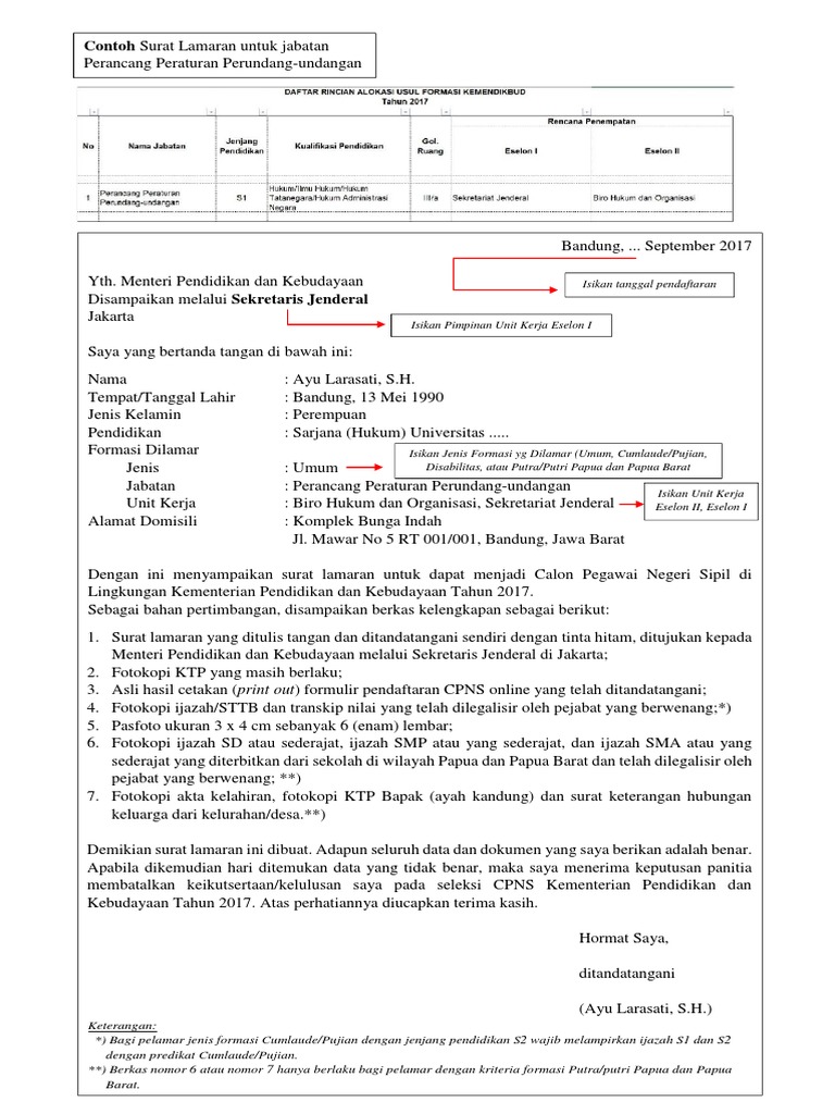 Sumber berita dan contoh surat lamaran pernyataan ini adalah cpnskemdikbudgoid. Dan selanjutnya juga telah diumumkan hasil skd cpns 2017 ini secara langsung. Contoh soal tes cpns kemendikbud tahun 2017 latihan soal cpns tiap tiap berisikan banyak bocoran soal cpns gratis beserta kunci jawabannya dengan format pdf membantu kamu dalam menghadapi pendaftaran tes cpns. Berikut contoh surat lamaran untuk mendaftar cpns kemendikbud 2019. Membuat surat lamaran cpns bagi yang belum pernah memang sedikit susah. Contoh terbaru surat lamaran cpns kemendikbud tahun 2017 sesuai dengan pengumuman pendaftaran cpns tahun anggaran periode dua bahwa kementerian pendidikan dan kebudayaan kemendikbud merupakan salah satu kementerian yang ikut andil dalam membuka kesempatan berkarir kepada warga negara indonesia untuk bisa menduduki pada posisi jabatan sebagai aparatur sipil negara dengan jumlah formasi.
