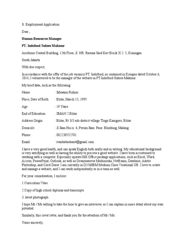 Bagian personalia po box 002 jakarta 10001 hal. Nah bagi yang melamar pekerjaan karena mendapatkan informasi dari iklan bisa mencantumkan dari iklan mana informasi tersebut didapat. Kediri 2 juli 1995. Surat lamaran yang lengkap dan benar dapat menjadi salah satu pertimbangan sebuah perusahaan untuk menerima orang tersebut. Dengan hormat seperti iklan yang termuat dalam harian surya tanggal 30 juni 1995 yang memberitakan bahwa perusahaan bapak tenaga area superviisor dan medical representative maka dengan ini kami mengajukan lamaran untuk mengisi lowongan.