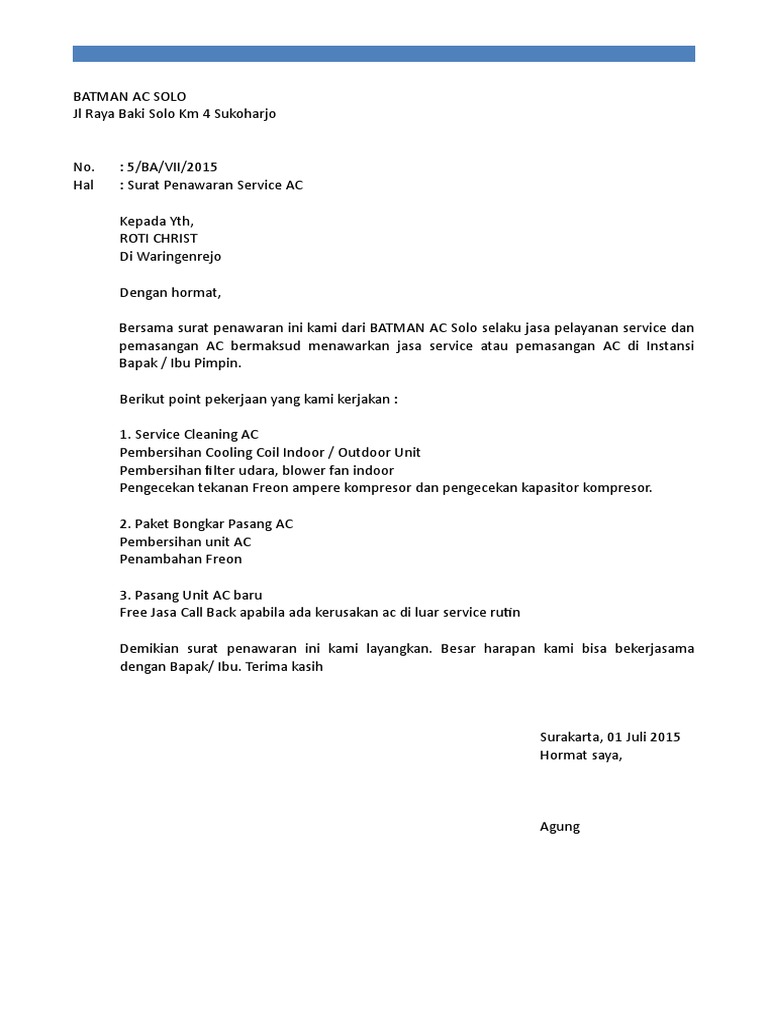 Contoh surat penawaran jasa service. Hal penawaran jasa service. Contoh surat penawaran para pembaca sekalian sekedar mengingatkan bahwa pada artikel sebelumnya kita sudah pernah membahas mengenai surat penawaran barang dan jasa mulai dari teori sampai contoh contohnya. 085242487992 no. Siti fatimah sesela gunung sari sumatera barat hp. Teknik enjiner perbaikan pemasangan dan perawatan jl. Anda dapat melihat dengan jelas contoh surat penawaran kerjasama jasa cleaning service menggunakan desktop anda tablet android atau iphone dan perangkat smartphone lainnya secara gratis.