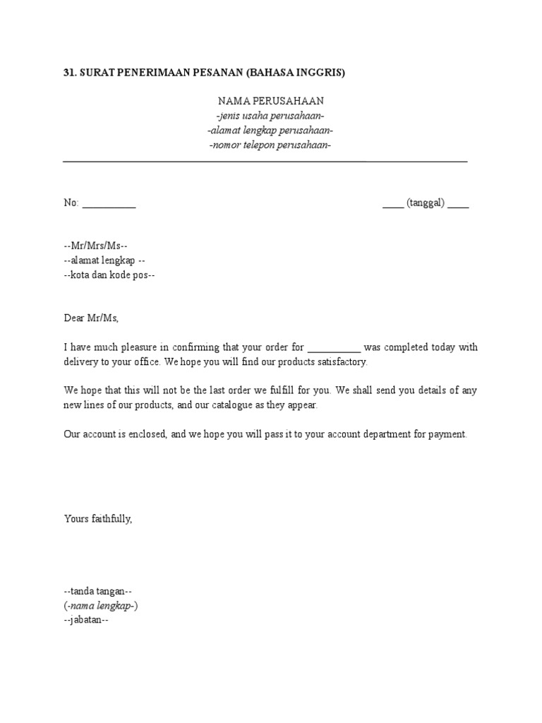 Surat penerimaan pesanan seperti pada waktu sebelum belumnya admin situs contoh surat kembali hadir dihadapan para pembaca untuk memberikan ulasan informasi mengenai contoh surat. Bagian bagian surat pesanan barang. Surat penerimaan pesanan merupakan hastag atau topik khusus untuk mengelompokkan gambar surat penerimaan pesanan terbaru dari situs kumpulan contoh surat dengan tujuan untuk memudahkan navigasi anda dalam mencari kategori sesuai keinginan. Contoh surat balasan penggunaan surat menyurat dalam berbagai urusan resmi memang masih sangat sering kita lihat sekarang ini. Adapun jenis jenis surat yang dipergunakan oleh perusahaan disebut dengan surat dinas maupun surat resmi. Contoh surat pesanan pada era transaksi internet sekarang ini banyak dari pelaku bisnis memanfaatkan jasa pengiriman melalui internet yang merupakan sebuah transaksi yang cepat dan efisien.