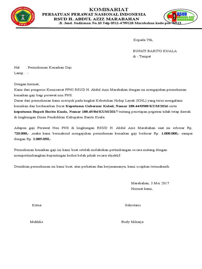 Surat permohonan kenaikan gaji. 24 juni 2015 1753 28169 0 2 mohon tunggu. Contoh surat kenaikan gaji yang benar dan tepat. Contoh surat naik gaji ini adalah sekadar contoh semata mata bagi anda yang ingin mendapatkan kepastian rupa bentuk surat penaikan gaji amnya. Contoh surat ini merupakan salah satu syarat yang harus dilengkapi oleh karyawan tersebut dalam mengajukan permohonan pinjaman atau kredit. Contoh surat permohonan kenaikan gaji yang baik dan benar dwmaicom.