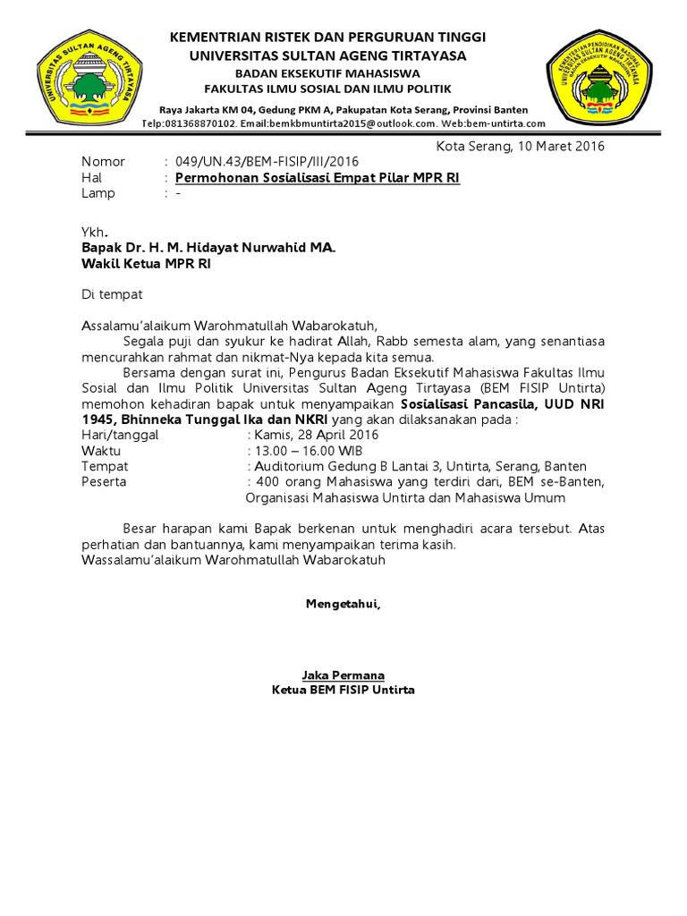 Puisi perpisahan kls xii terima kasih guruku contoh rab kegiatan turnamen. Demikian contoh surat permohonan sosialisasi toefl yang dikirimkan oleh lembaga kursus bahasa inggris ke pimpinan sebuah pondok pesantren. Atas perhatian dan kerjasama bapakibu kami ucapkan terimakasih. Tata tertib peserta unbk. Desa sindanglaya kecamatan cinangka kabupaten serang maka kami selaku mahasiswai pbl fkk universitas muhammadiyah jakarta bermaksud memohon kerjasama sosialisasi kepada pihak bpjs kabupaten serang. Contoh surat permohonan sosialisasi.