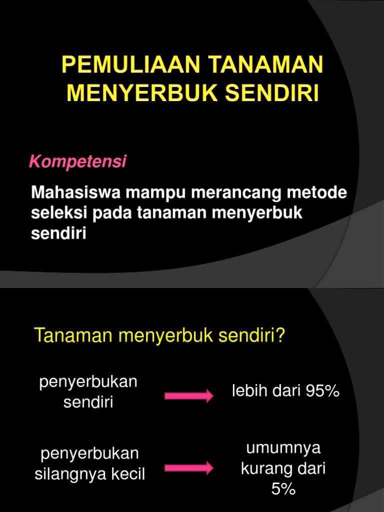 Contoh tanaman menyerbuk sendiri. Alel mengarah ke homosigositas sehingga susunan genetik dalam tanaman semua sebagian besar homosigot. Tanaman menyerbuk sendiri yang disilangkan heterosigot makin kurang keragaman genetiknya terjadi penyerbukan sendiri terus menerus perubahan susunan genetika pada masingmasing pasangan. Beberapa di antaranya yaitu padi jagung kelapa sawit kepala dan lain sebagainya. Penyerbukan silang menghasilkan kombinasi satuan keturunan yang lebih beragam dari keduanya. Tanaman menyerbuk sendiri dapat dimuliakan antara lain melalui polinasi. Namun perlu di catat bahwa postingan kali ini tidak bermaksud untuk memberikan fasilitas atau kemudahan bagi kawan kawan semua namun hanya.