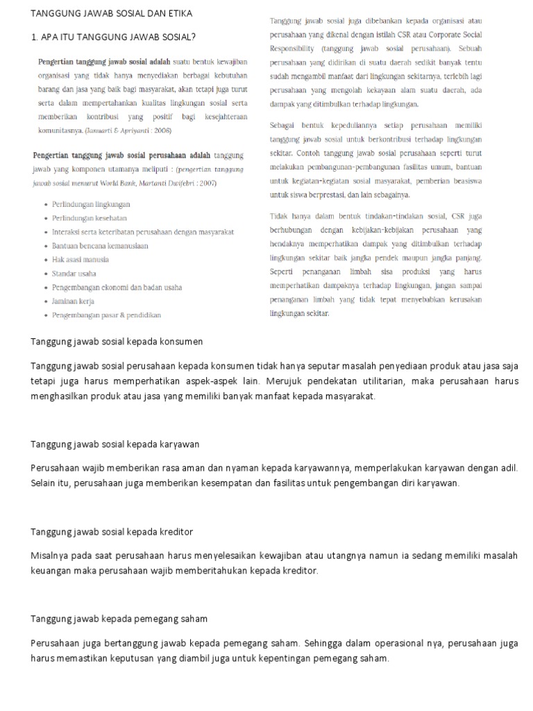 Tanggung jawab sosial perusahaan atau corporate social responsibility csr adalah suatu konsep bahwa organisasi khususnya namun bukan hanya perusahaan adalah memiliki berbagai bentuk tanggung jawab terhadap seluruh pemangku kepentingannya yang di antaranya adalah konsumen karyawan pemegang saham komunitas dan lingkungan dalam segala aspek operasional perusahaan yang mencakup aspek. Oleh karena itu etika bisnis dan tanggung jawab sosial perusahaan kini menjadi sebuah isu yang penting dalam dunia bisnis. Siapa yang tidak kenal starbucks perusahaan kedai kopi terbesar dari amerika serikat. Contoh tanggung jawab sosial perusahaan yang sudah sering di lakukan adalah mengelola limbah b3 secara baik. Contoh tanggung jawab sosial perusahaan.