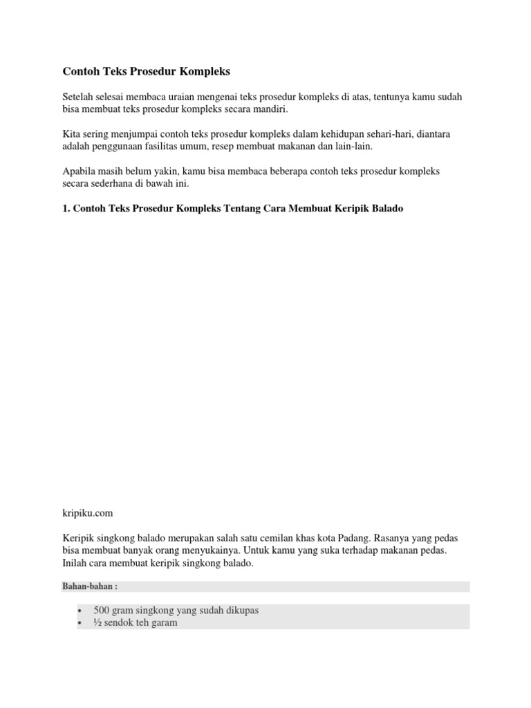 Cara membuat getuk lindri. Getuk lindri merupakan makanan tradisional dari jawa tengah. Contoh teks prosedur kompleks jika membicarakan teks maka pastinya anda akan mendapatkan banyak jenis jenis teks dan jenis teks tersebut akan muncul di dalam pelajaran bahasa indonesia. Contoh teks prosedur kompleks membuat makanan dan minuman. Sekolah bahasa inggris procedure text merupakan sebuah teks yang berisikan tentang cara cara dalam melakukan sesuatu dalam bahasa inggris. Kalian sangat beruntung menemukan artikel ini karna kami akan membahas contoh teks prosedur membuat makanan beserta strukturnya.