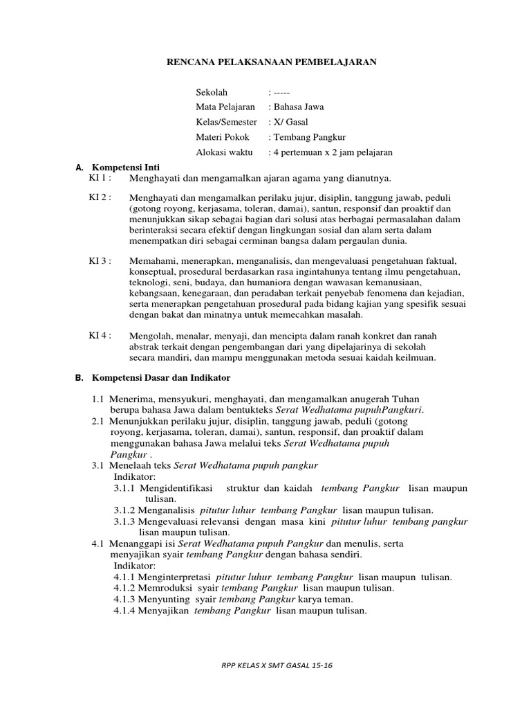 Tembang Pangkur Tema Pendidikan Bahasa Jawa 12 Bdp 2