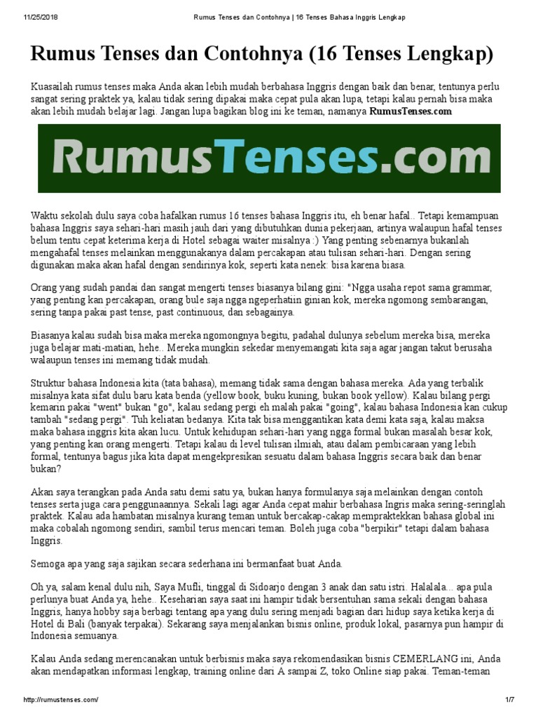 Penjelasan 16 tenses bahasa inggris beserta contoh kalimat tenses merupakan perubahan kata kerja berdasarkan urutan waktu. 16 tenses rumus dan contoh kalimat part 1 menguasai tenses dalam bahasa inggris sangat penting. Rumus dan contoh kalimat simple future tense. 16 tenses dalam bahasa inggris dan contoh kalimatnya sangat dipengaruhi oleh waktu. Dengan kata lain tenses adalah pembedaan bentuk kata kerja untuk menyatakan perbedaan waktu dan durasi suatu perbuatan atau kejadian. Tenses adalah sebuah kategori tata bahasa grammar yang menekankan pada penggunaan kata kerja verb yang dikaitkan dengan waktu penggunaannya.