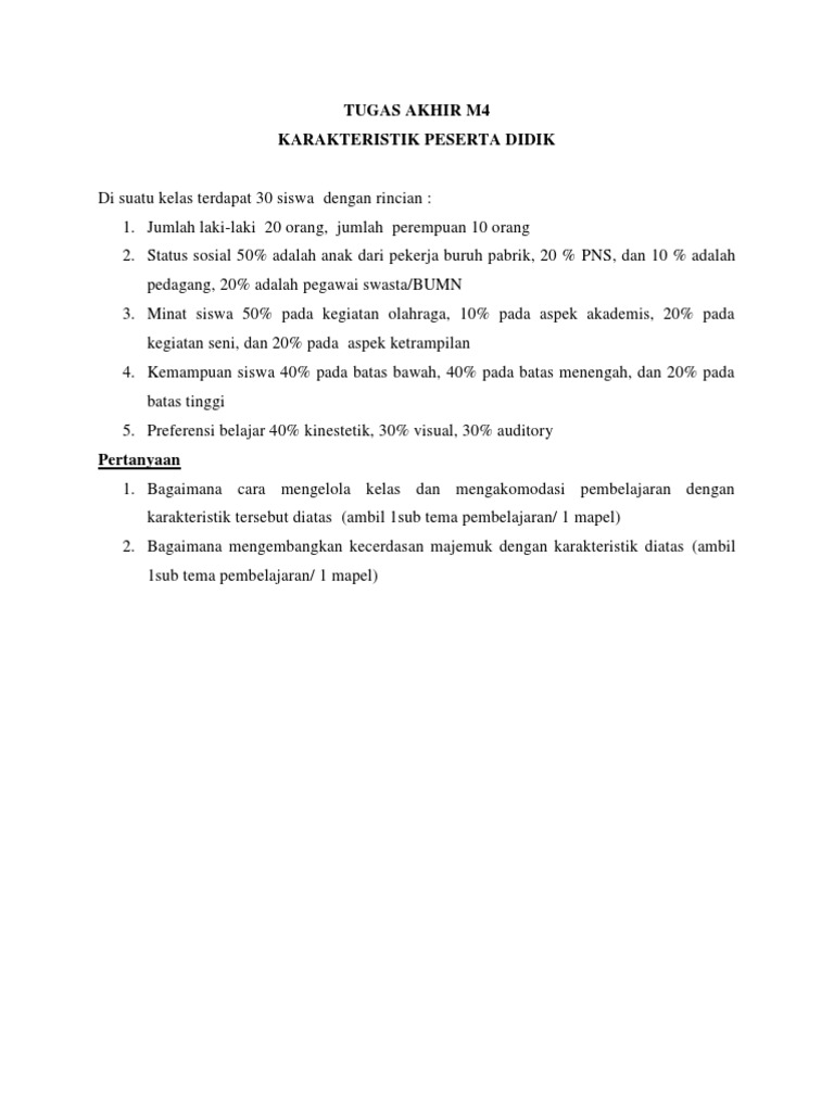 Tugas akhir modul 4 ppg sd. Modul 4 karakteristik peserta didik.